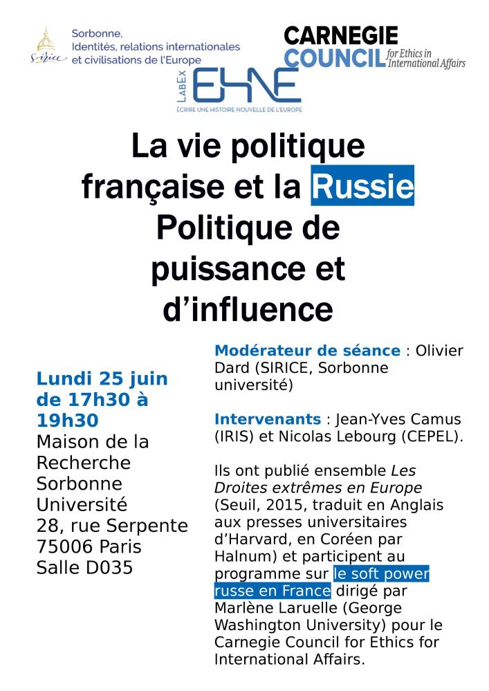 - Les extrêmes droites françaises dans le champ magnétique de la Russie, par Nicolas Lebourg,