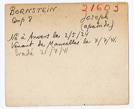 Il s’agit d’une simple erreur mémorielle : calmons les ardeurs des complotistes. Pour retrouver le fil des faits, il faut revenir aux archives. Il s’avère qu’il y a quelques années l’auteur de ces lignes et Abderahmen Moumen furent engagés dans un cadre postdoctoral pour faire l’histoire encore quasi-totalement inconnue de ce camp (voir ici pour l’histoire du lieu et là pour sa mémoire, il y avait eu avant cet ouvrage pionnier mais consacré aux seules années 1941-1942 quand le camp fut actif plusieurs décennies). Conservée aux archives départementales des Pyrénées Orientales, on trouve la fiche d’internement de Joseph Bornstein :