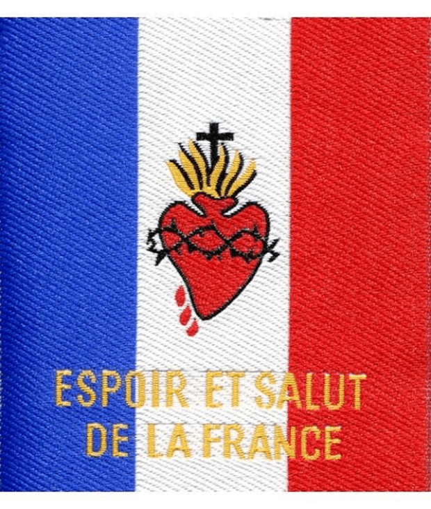 Enfin, le dernier item que nous voudrions présenter ne vient pas de cette mouvance radicale et identitaire. S’il partage le nationalisme du premier, il s’éloigne du racialisme européen et païen des deuxièmes. Il s’agit de la mouvance nationale catholique, dans sa tendance traditionaliste. Ces mouvements se reconnaissent dans le patriotisme, sans pour autant se reconnaître dans la République, bien au contraire. Leur drapeau, qui date de la Grande Guerre, a fait sa réapparition durant les manifestations contre le « mariage pour tous ».