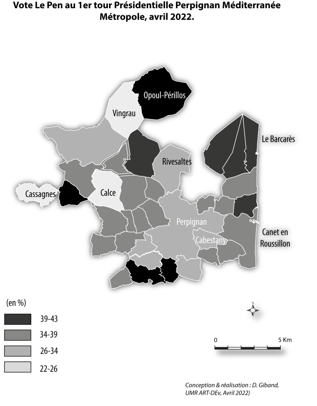 Le vote pour Marine Le Pen dans l’agglomération perpignanaise au premier tour de la présidentielle (2022)
