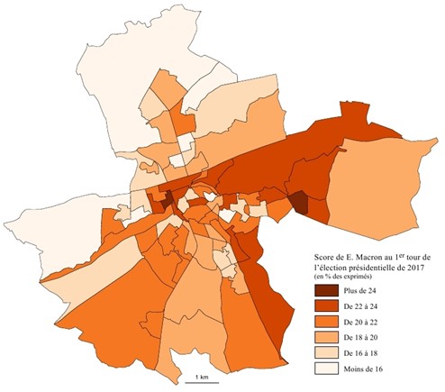 Carte réalisée par Sylvain Manternach pour Jérôme Fourquet, Nicolas Lebourg et Sylvain Manternach, Perpignan, une ville promise au Rassemblement national ?, note de la Chaire Citoyenneté, Sciences Po Saint-Germain-en-Laye, février 2020..