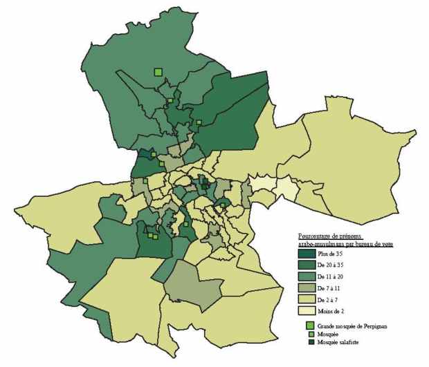 Carte réalisée par Sylvain Manternach pour Jérôme Fourquet, Nicolas Lebourg et Sylvain Manternach, Perpignan, une ville avant le Front national ?, Paris, Fondation Jean Jaurès, 2014.