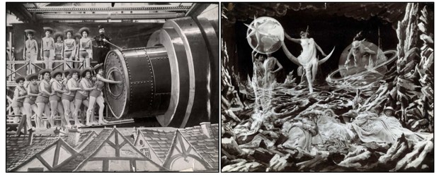 La première modalité exceptionnelle est celle des femmes à la fréquentation sulfureuse : depuis les actrices, les danseuses jusqu’aux « cocotes »[5]. Ainsi, les actrices qui, sur Terre, chargent l’obus dans le canon, sont en short et toutes habillées de façon identique. Elles ressemblent plus à des danseuses de revue qu’à des assistantes de scientifiques. Impression confirmée par le fait que Georges Méliès a bénéficié de la prestation du corps de ballet du Châtelet.