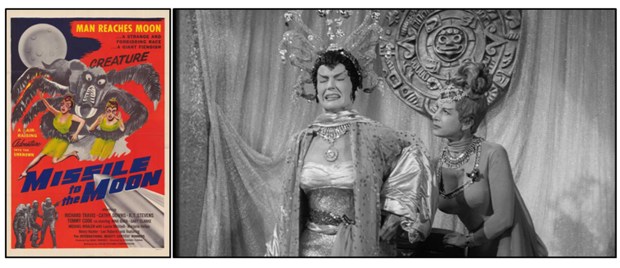 Avec des effets spéciaux indigents, Fusée pour la Lune (Missile to the Moon) de Richard Earl Cunha, en 1958, raconte une expédition lunaire qui découvre une civilisation féminine particulièrement précaire.