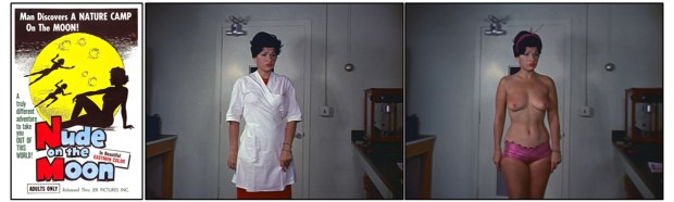 Le film Nus sur la Lune (Nude on the Moon) d’O. O. Miller et Anthony Brooks (alias Doris Wishman et Raymond Phelan), sorti en 1961, met en scène cette transition vers la nudité des personnages féminins ordinaires. Il raconte la découverte sur la Lune, par un duo d’explorateurs – le scientifique Jeff Huntley (Lester Brown) et le professeur Nichols (William Mayer) -, d’une civilisation cachée derrière un mur : une reine de la Lune (Marietta) dotée de pouvoirs télépathiques dirige femmes et hommes qui vivent torses nus.