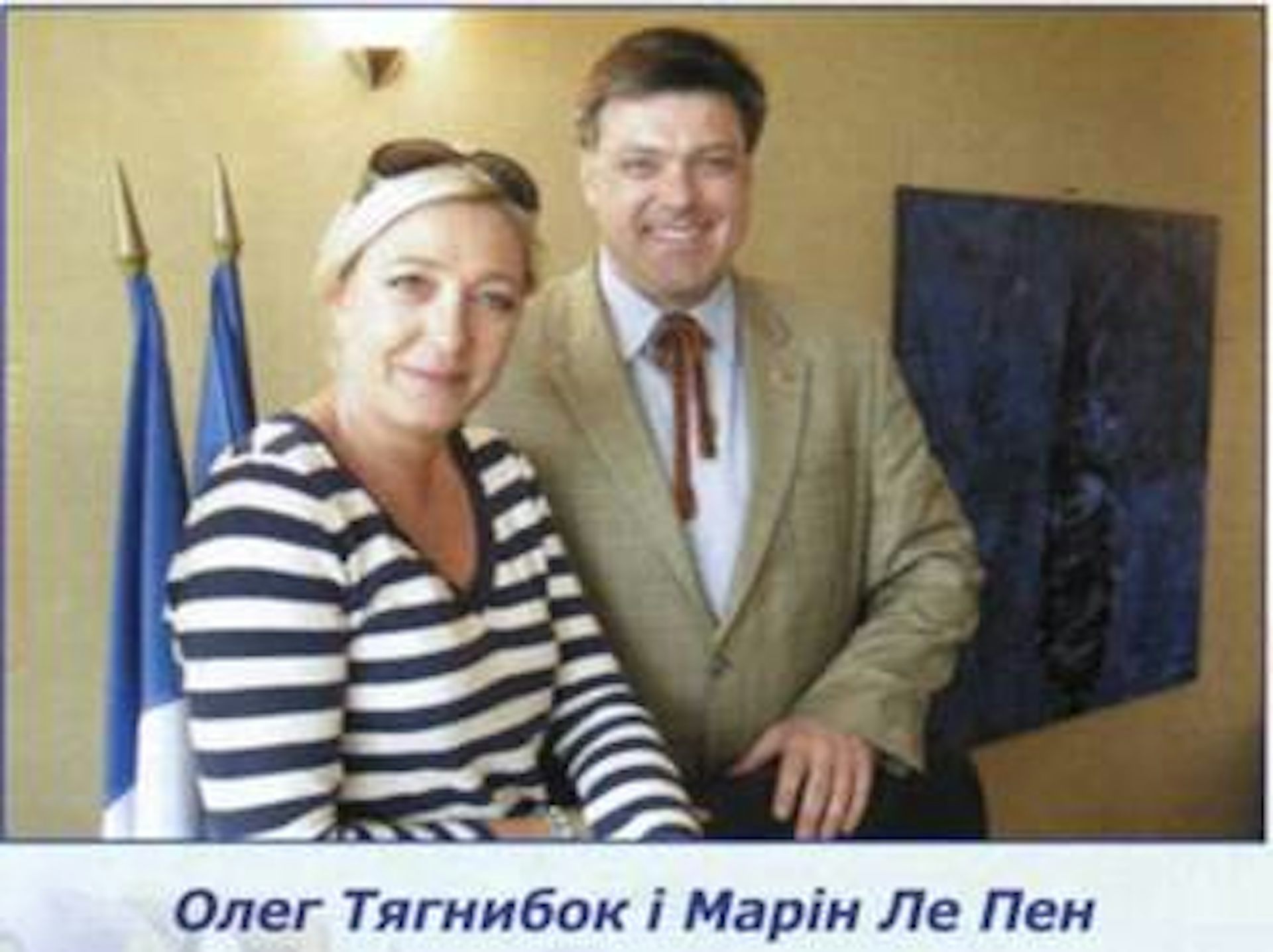 Le 11 novembre de cette année-là, Svoboda publie une déclaration saluant la capacité du Front national à anticiper les risques liés, selon le parti ukrainien, à une immigration massive. Tyahnybok déclare :