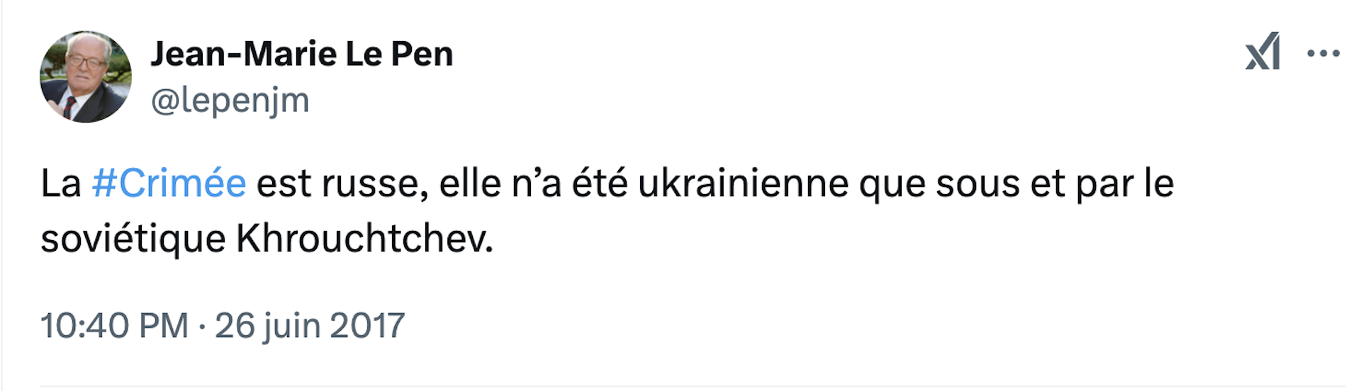 Première parution : Adrien Nonjon, « Une histoire d’extrêmes droites : Jean-Marie Le Pen, la Russie et l’Ukraine », The Conversation, 13 janvier 2025.